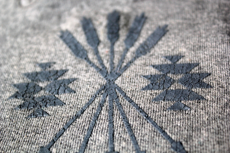 Discharge ink is used to print lighter colours onto dark background fabrics, they work by removing the dye of the garment – this means they leave a much softer texture. The cons with this process is that they are less graphic in nature than Plastisol Inks, and exact colours are difficult to control. One of the pros of using this process is they are especially good for distressed prints and under-basing on dark garments that are to be printed with additional layers of Plastisol. It adds variety to the design or gives it that natural soft feel.